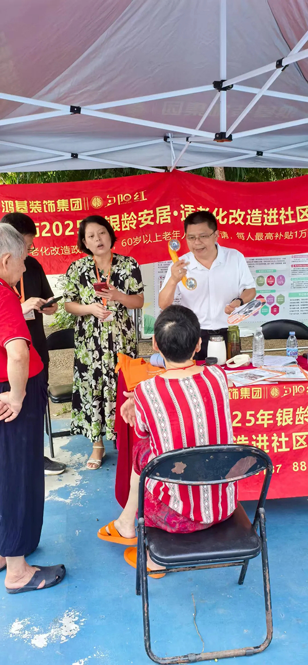 此次活動通過面對面、零距離的溝通方式,讓更多老年人了解適老化改造的重要性與政策福利,更切實(shí)解決了老年群體及其家庭的實(shí)際困惑,將關(guān)愛落到實(shí)處?;顒蝇F(xiàn)場,鴻基裝飾集團(tuán)董事長胡克偉表示:“后續(xù)集團(tuán)還將持續(xù)關(guān)注社區(qū)老年群體需求,憑借專業(yè)的設(shè)計(jì)與施工能力,為符合條件的家庭提供更優(yōu)質(zhì)的適老化改造服務(wù),讓“養(yǎng)老”變“享老”,為老年居民打造安全、便捷的居家環(huán)境”。